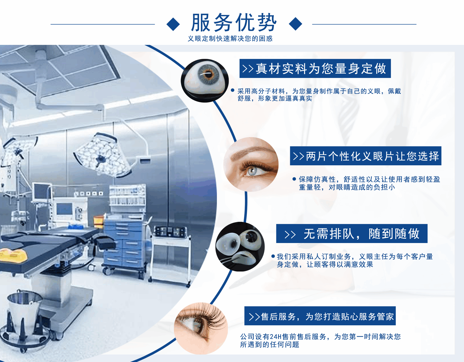 正目醫(yī)療科技有限公司致力于為用戶提供假眼,在哪里可以定制義眼,義眼哪家好,假眼價格,義眼價格,義眼費用,義眼公司,是集義眼定制、保養(yǎng)、咨詢?yōu)橐惑w的綜合性義眼定制企業(yè)。 獨創(chuàng)的義眼工藝結構,根據(jù)仿生物學原理,采用進口醫(yī)用植入材料:高分子材料、無毒素、性能穩(wěn)定、堅固耐用)、聚甲基丙乙烯阝-羥乙酯HEMA材料(軟性親水性材料),結合獨特的義眼個性化佩戴技術,按佩戴者健眼的形態(tài)、角膜、虹膜、及瞳孔的大小、色澤、血管紋理和脂肪分布,設計制作。擁有超薄、質輕、光滑、親水透氧、佩戴舒適和高逼真的特點。為保證佩戴效...